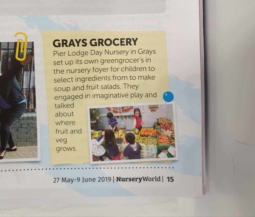Read More..At Pier Lodge, we organised our own green grocers in the foyer of the nursery for children to visit and ‘buy’ ingredients to make their own soup and fruit salads. They engaged in imaginative play, discussing where fruits and vegetables grow and where we can buy them from. The children were very excited to tell